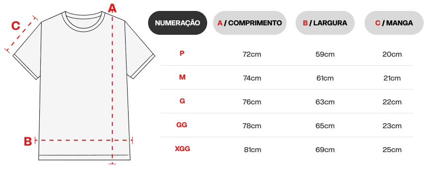 Dimensões: Consulte nossa tabela de medidas acima.